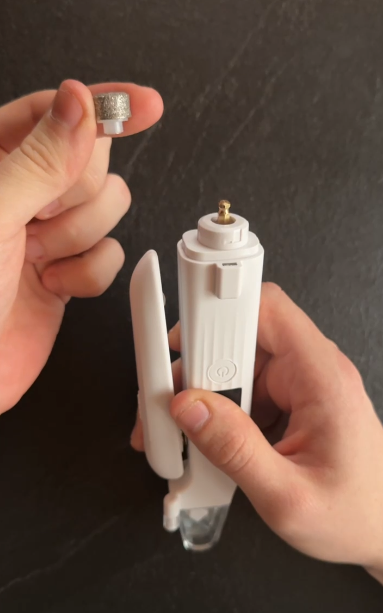 Den Schleifkopf kannst du leicht von Krallenstaub befreien und bei Bedarf gegen den Ersatzaufsatz austauschen.